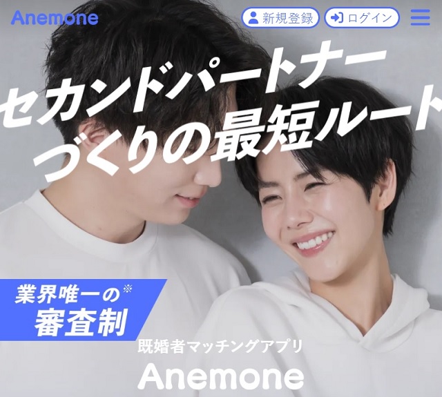 アネモネ(Anemone)は業界唯一の審査制を導入した既婚者マッチングアプリです。既婚者限定ながら入会時に身分証や独自審査が行われ、真剣度の高い会員だけが利用できる仕組みになっています。「身バレが心配…」という方にも安心で、匿名ニックネームで活動できるうえ、不適切なユーザーはAIと人の目による監視で徹底排除されています。サービス開始は2024年と新しく、累計会員数はこれからですが、安全性の高さから着実に利用者を増やしています。